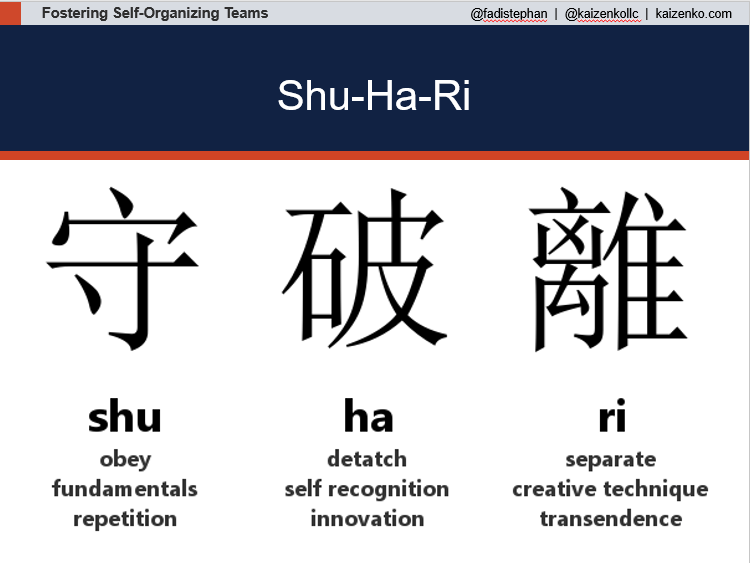 Japanese martial arts students, especially those studying aikido, often learn a process called shu-ha-ri. In the shu state they study proven disciplines. Once they’ve mastered those, they enter the ha state, where they branch out and begin to modify traditional forms. Eventually they advance to ri, where they have so thoroughly absorbed the laws and principles that they are free to improvise as they choose. Mastering agile innovation is similar.